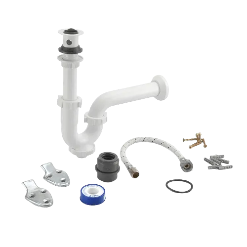 Set para baño que incluye todo lo necesario para la instalación de un lavabo.